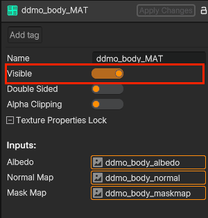 - Added the ability to hide meshes directly within the material component.