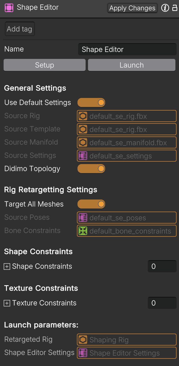Shaping Rig and Shape Editor Settings will automatically be assigned after pressing the Setup button.