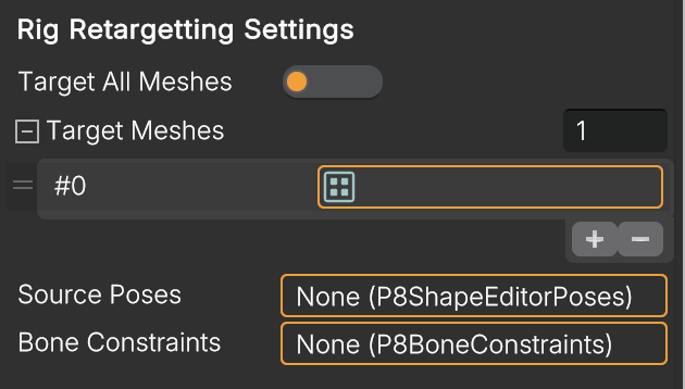 - Source Settings - Settings that define the interactions and behavior of the Shape Editor. This will be updated and retarget to suit the given rig and parameters.