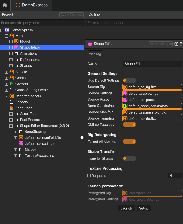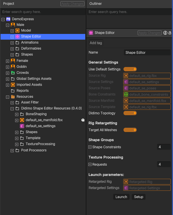 If you're using our Demo Project, this package is already included, you can explore an example of how there resources are applied in the preconfigured Shape Editor under the Male template.