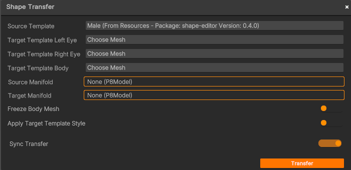 - Freeze Body Mesh - Enable this option to consider only the head mesh during the shape transfer process. Disable it to consider the entire body.