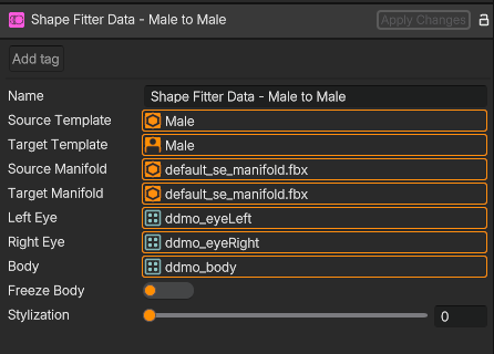 - Target Template Body - List of the template’s body meshes. Use this only if the template has separate head and body meshes, as head vertices should not be included in this section. This allows the creation of variations of the template’s head shape while preserving the body as is.